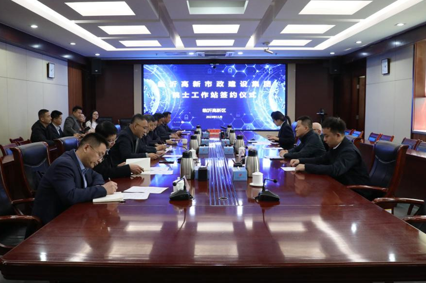 11月20日上午,临沂高新区市政建设集团与外籍院士共建院士工作站签约仪式在高新区举行。市科技局党组成员、副局长姜良友,市科技局科技合作科科长、四级调研员蔡增祥出席签约仪式,临沂高新区党工委副书记、管委会副主任王家兴出席并致辞,区党工委委员、组织部部长程志强主持签约仪式。