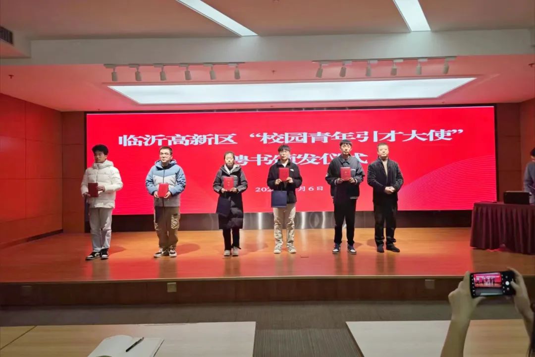 在龙湖软件园同学们参观了高新科技成果展厅,让大家对高新区科技产业发展状况、创业园区运营孵化情况等都有了更直观的认知。随后重点讲解了高校学子较为关心的青年人才新政及高校毕业生就业创业服务政策,让大家了解到回家乡就业创业可以享受到从政策扶持、资金保障、服务指导等多方面全流程助力。最后,党工委组织部向荣获临沂市“校园青年引才大使”称号的同学颁发聘书,让同学们深切感受到高新区尊重人才、支持人才、关爱人才的浓厚氛围。