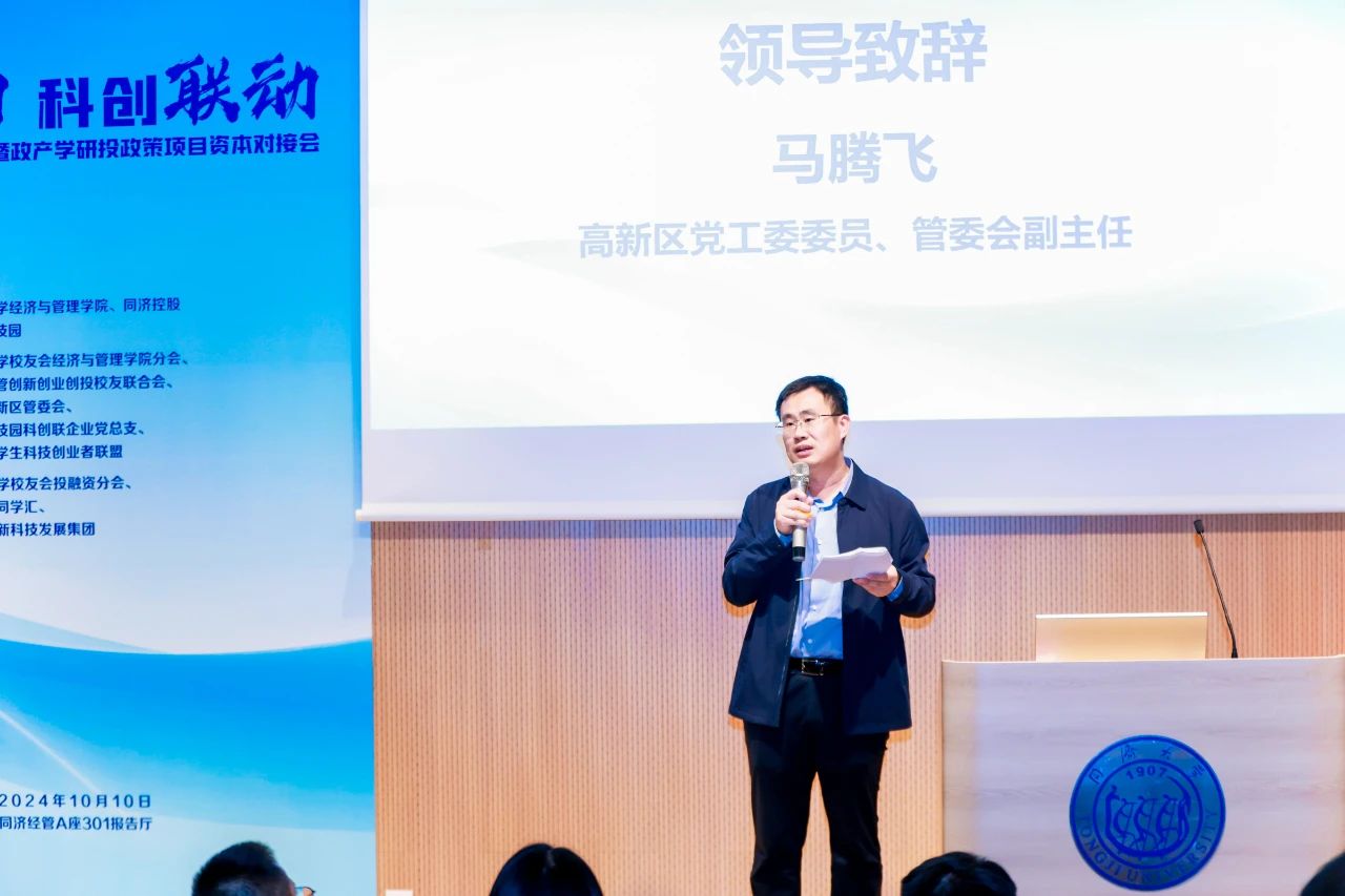 马腾飞在致辞中表示,本次活动是落实双方战略合作协议的重要举措,也是密切双方合作的生动实践,高新区将全力做好同济校友及创业项目服务保障工作,营造良好的政策环境和开放的营商环境,实现双方强强联合、互利共赢。
