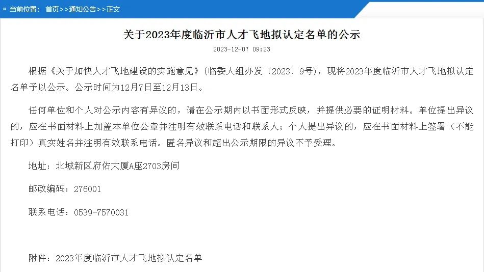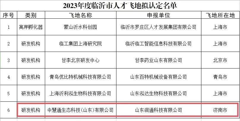 近日,临沂市科技局对2023年度临沂市“人才飞地”拟认定名单进行公示,我区企业山东润通科技有限公司在济南设立的研发机构成功入选公示名单。