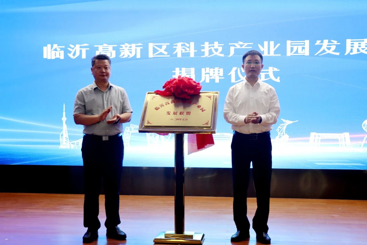 临沂城发集团党委委员,临沂人才工作集团党委书记、董事长常兵,高新区党工委委员、管委会副主任张明坤为临沂高新区科技产业园发展联盟揭牌。