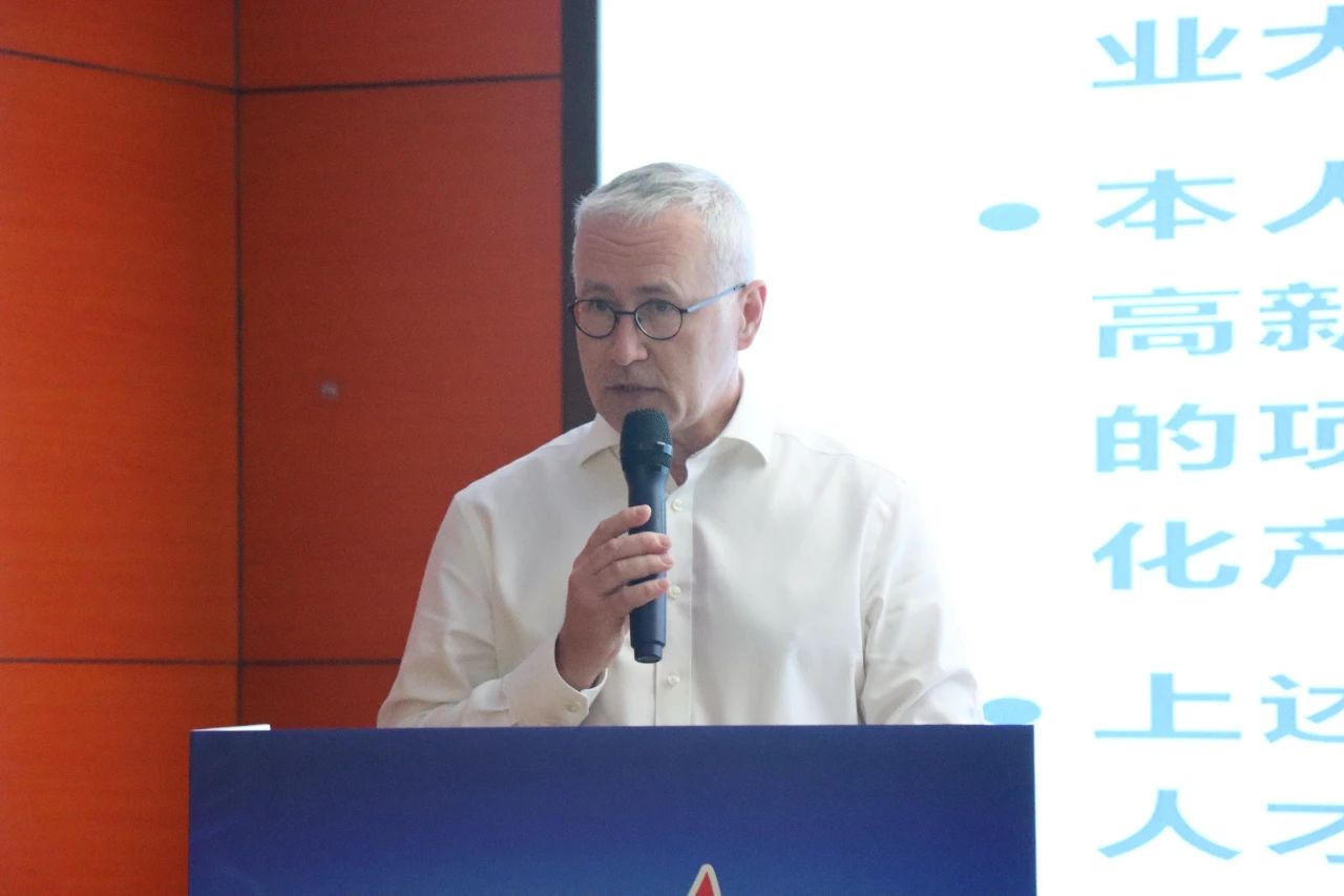 高新区创新创业人才代表、临沂高新区鸿图电子有限公司德国专家亚历山大•胡瓦特发言,介绍了与临沂高新区鸿图电子有限公司的合作及成果情况,对临沂市及高新区对人才的支持服务表示感谢,希望更多的人才到临沂高新区创新创业。