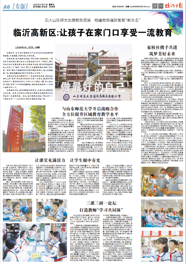 自山东师范大学临沂高新区实验小学新一届领导班子成立之初,便将家校社协同育人项目建设摆在了十分重要的位置。