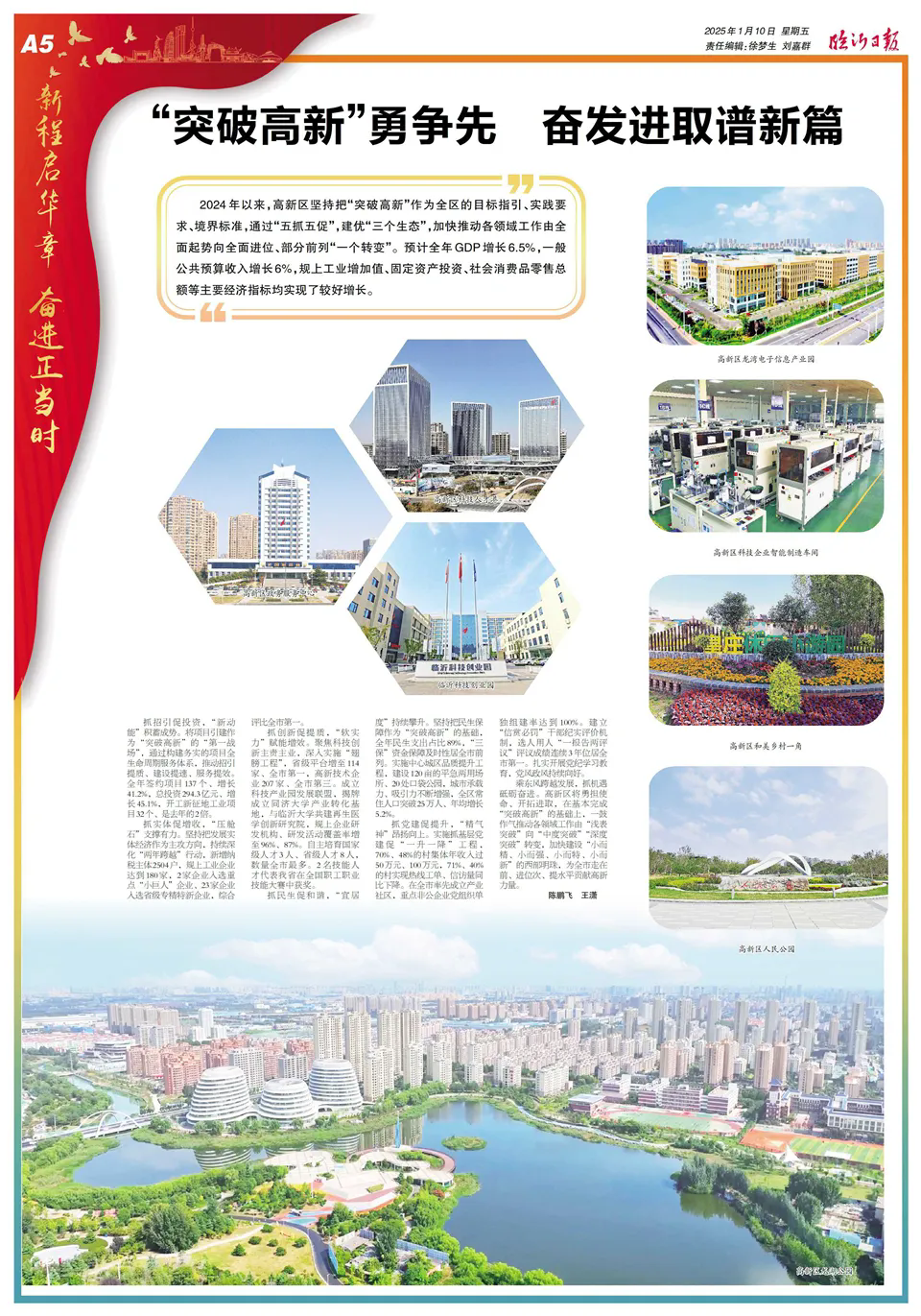 2024年以来,高新区坚持把“突破高新”作为全区的目标指引、实践要求、境界标准,通过“五抓五促”,建优“三个生态”,加快推动各领域工作由全面起势向全面进位、部分前列“一个转变”。预计全年gdp增长6.5%,一般公共预算收入增长6.5%,规上工业增加值、固定资产投资、社会消费品零售总额等主要经济指标均实现了较好增长。