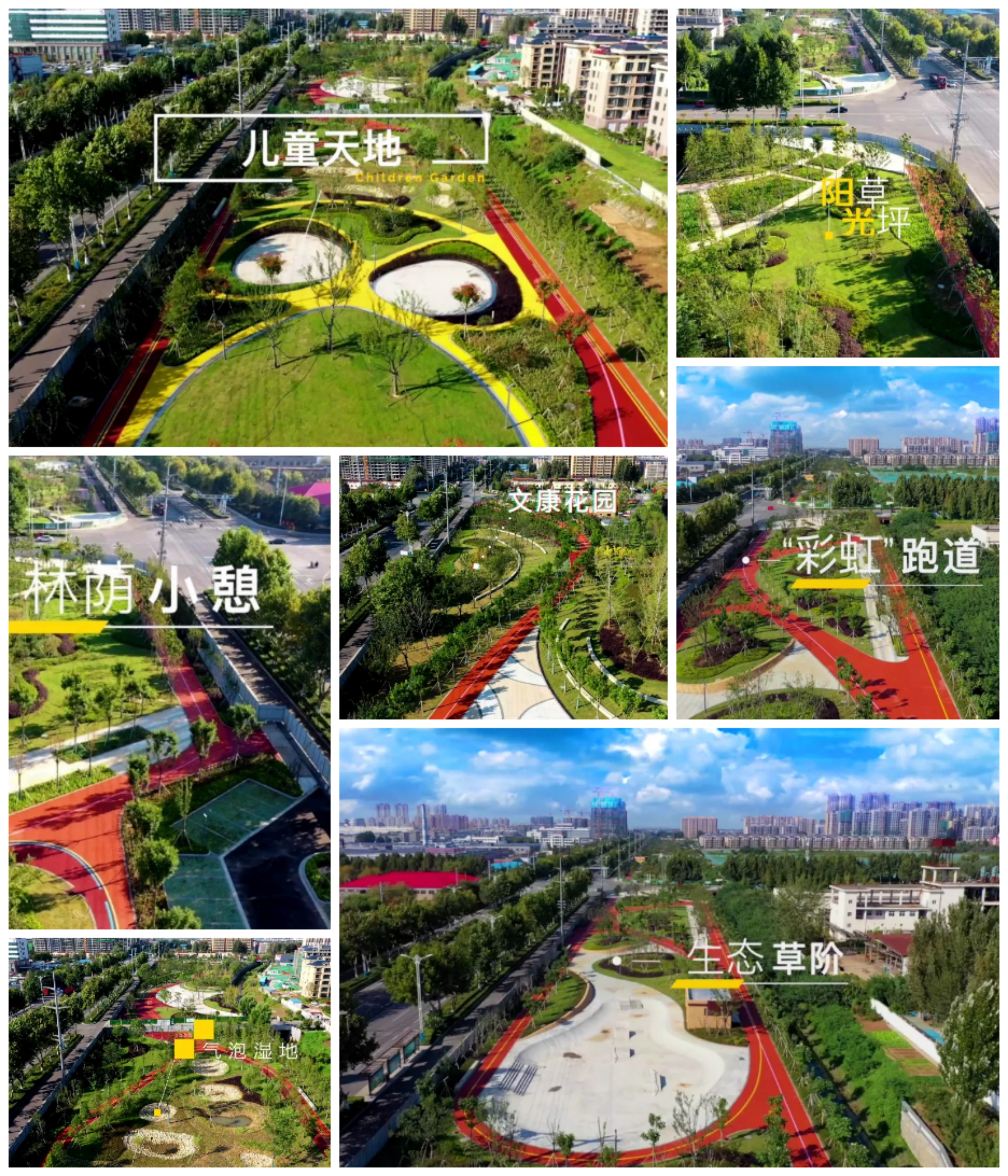 项目绿化以景观小品为主,种植乔木3300余株,灌木6.2万平方米。项目配置景观照明系统、海绵城市雨水综合利用系统、灌溉系统、停车系统,并配套建设3座公厕,为周边群众提供一个高新、科技、运动、生态的体育休闲公园。